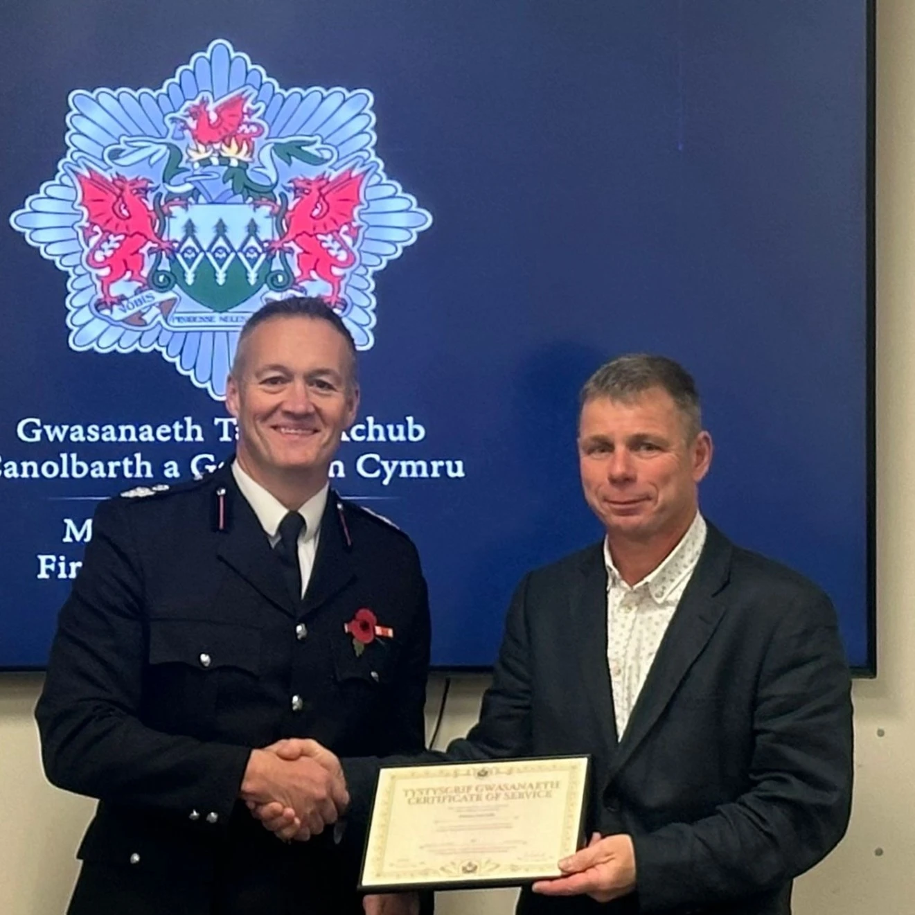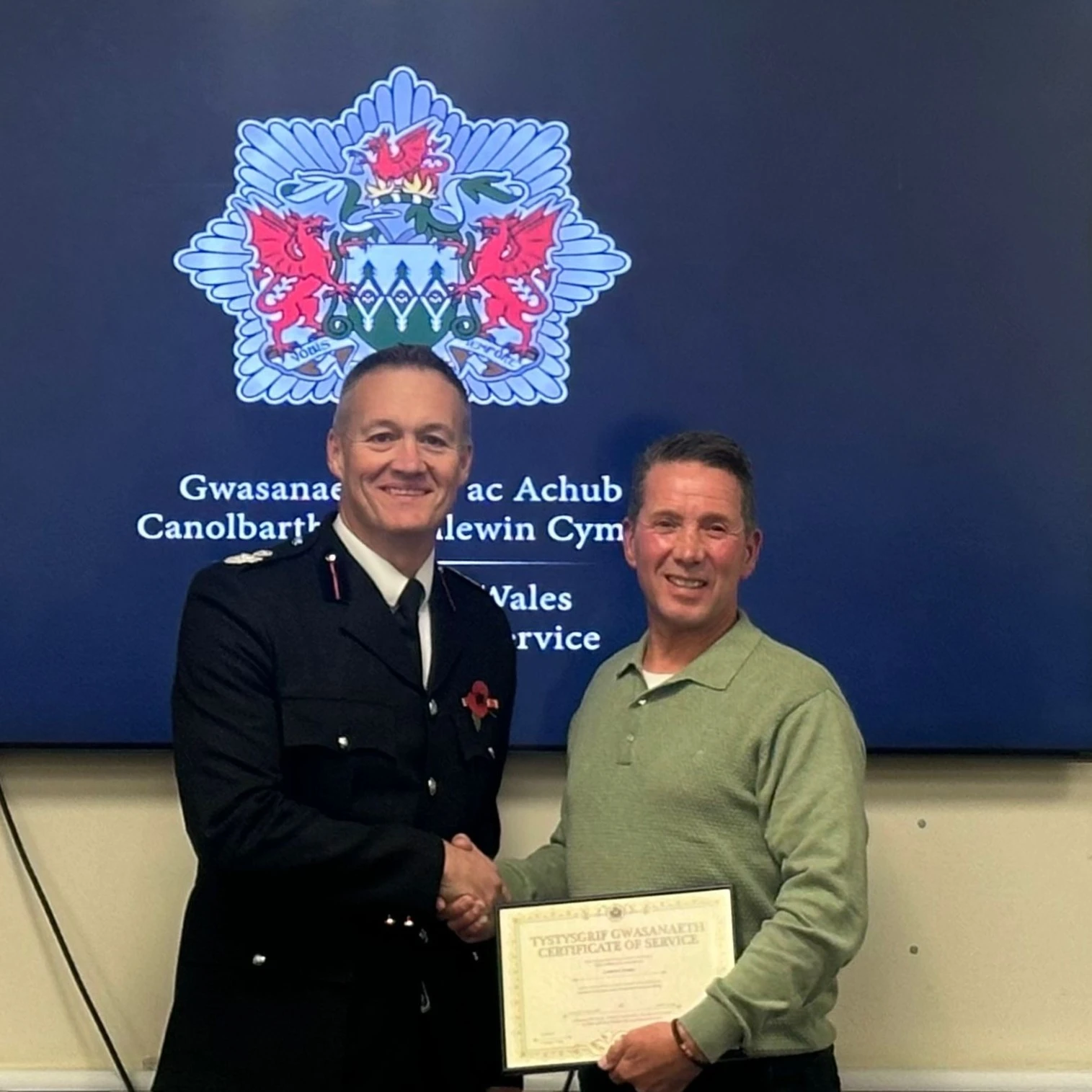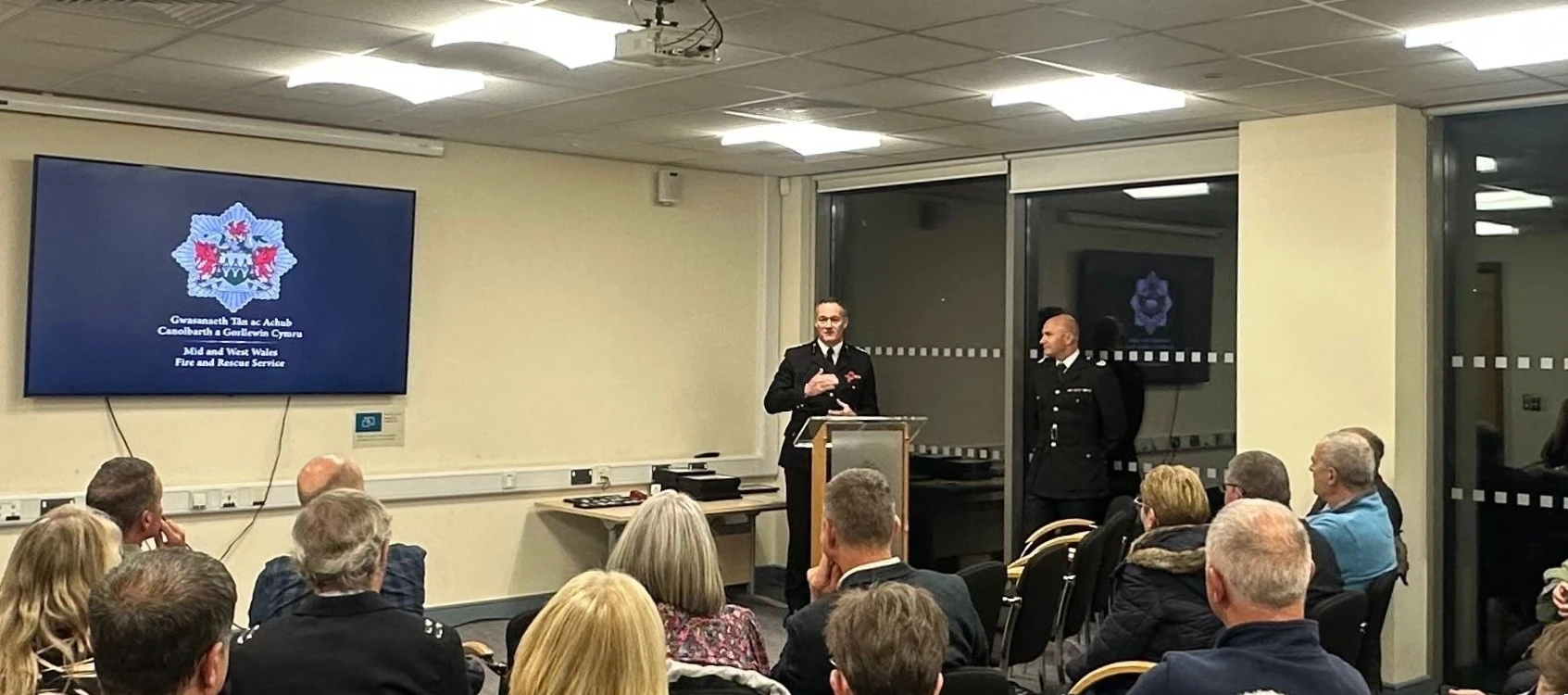 Wedi'i gyflwyno gan Brif Swyddog Tân Cynorthwyol GTACGC, Craig Flannery, a Phennaeth Rhanbarth y Gogledd GTACGC, y Rheolwr Grŵp Stephen Rowlands, roedd y noson yn gyfle arbennig i ddathlu teyrngarwch ac ymrwymiad personél GTACGC o bob rhan o Ranbarth y Gogledd y Gwasanaeth – Powys a Cheredigion. Roedd y seremoni yn cydnabod ymdrechion a phroffesiynoldeb rhyfeddol staff y Gwasanaeth sydd wedi ymroi 30 a 40 mlynedd o wasanaeth i'w cymunedau yn eu tro.