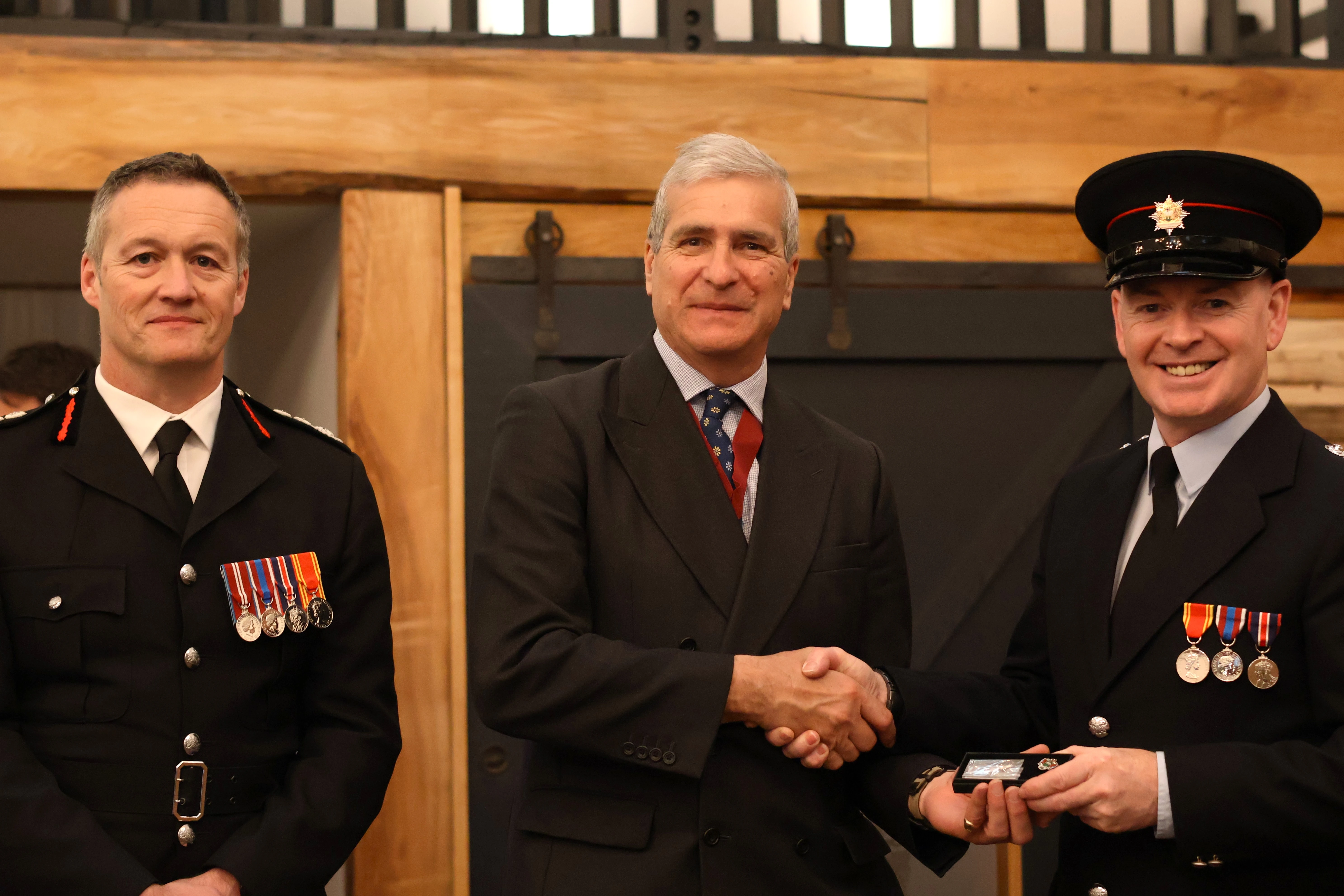 Hefyd yn bresennol roedd Dirprwy Arglwydd Raglaw Ei Fawrhydi Dyfed, Mr Rowland Rees-Evans DL, Uchel Siryf Powys, Mr William Watkins, Uchel Siryf Dyfed, Mr Andrew Phillips a Chadeirydd Awdurdod Tân ac Achub Canolbarth a Gorllewin Cymru, Mr John Davies.