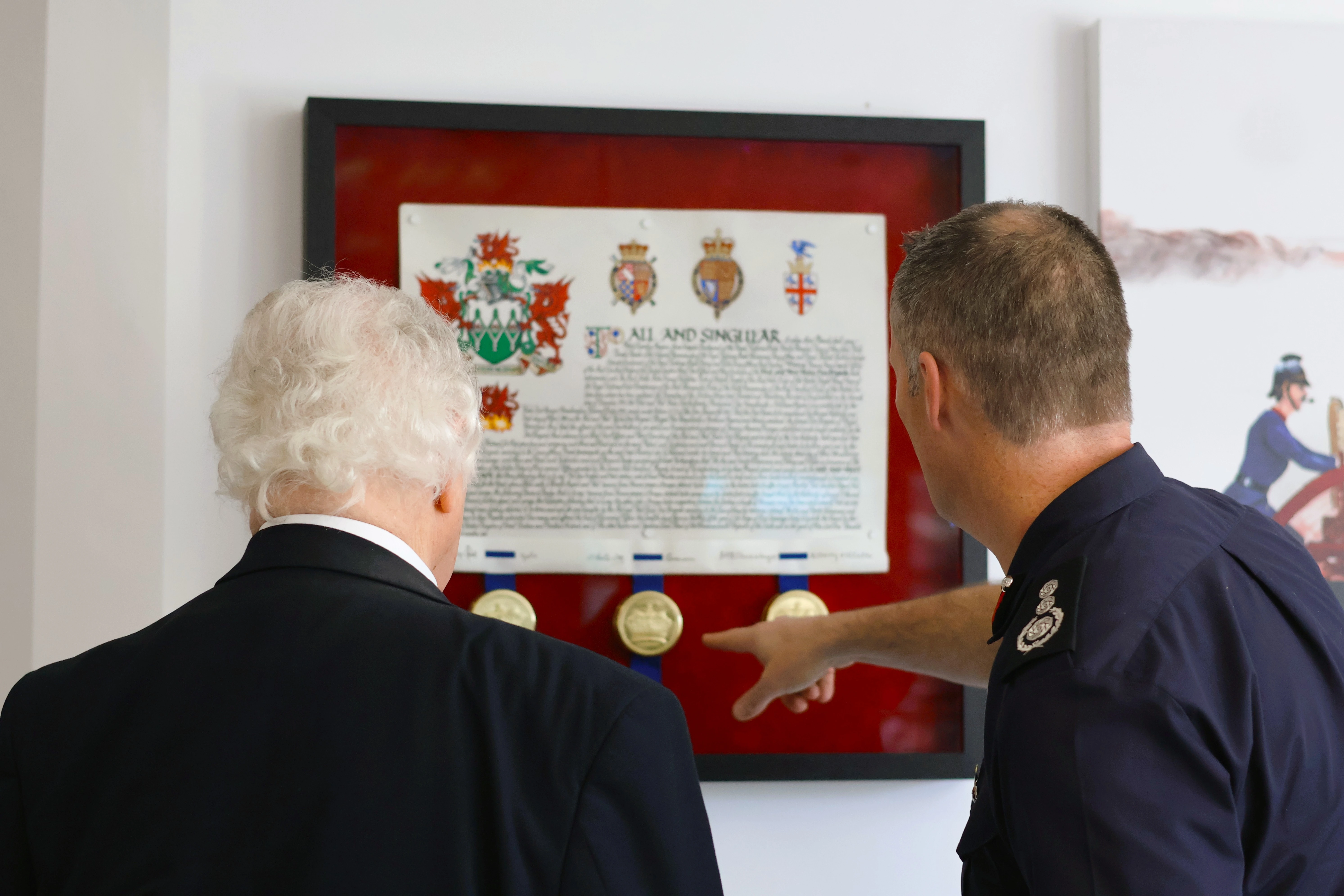 Yn ystod ei ymweliad, gwnaeth Mr King cwrdd â Phrif Swyddog Tân presennol y Gwasanaeth, Craig Flannery, y ddau ohonynt yn wreiddiol o Swydd Efrog, i drafod y datblygiadau o fewn y Gwasanaeth Tân ac Achub, uchafbwyntiau eu gyrfaoedd ac arweinyddiaeth.