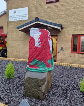 Hoffem ddiolch i Chwarel Gerrig Arbenigol Gwrhyd ym Mhontardawe am eu haelioni wrth roi’r garreg. Hoffem hefyd fynegi ein diolch i'r Rheolwr Gwylfa Jon Bates, a Mitch Ford, y Diffoddwr Tân Tom White a'r adran Ystadau am eu hymdrechion i drefnu'r gofeb. Yn olaf, hoffem ddiolch i Reolwr yr Orsaf, Richie Davies, am gydlynu'r diwrnod.