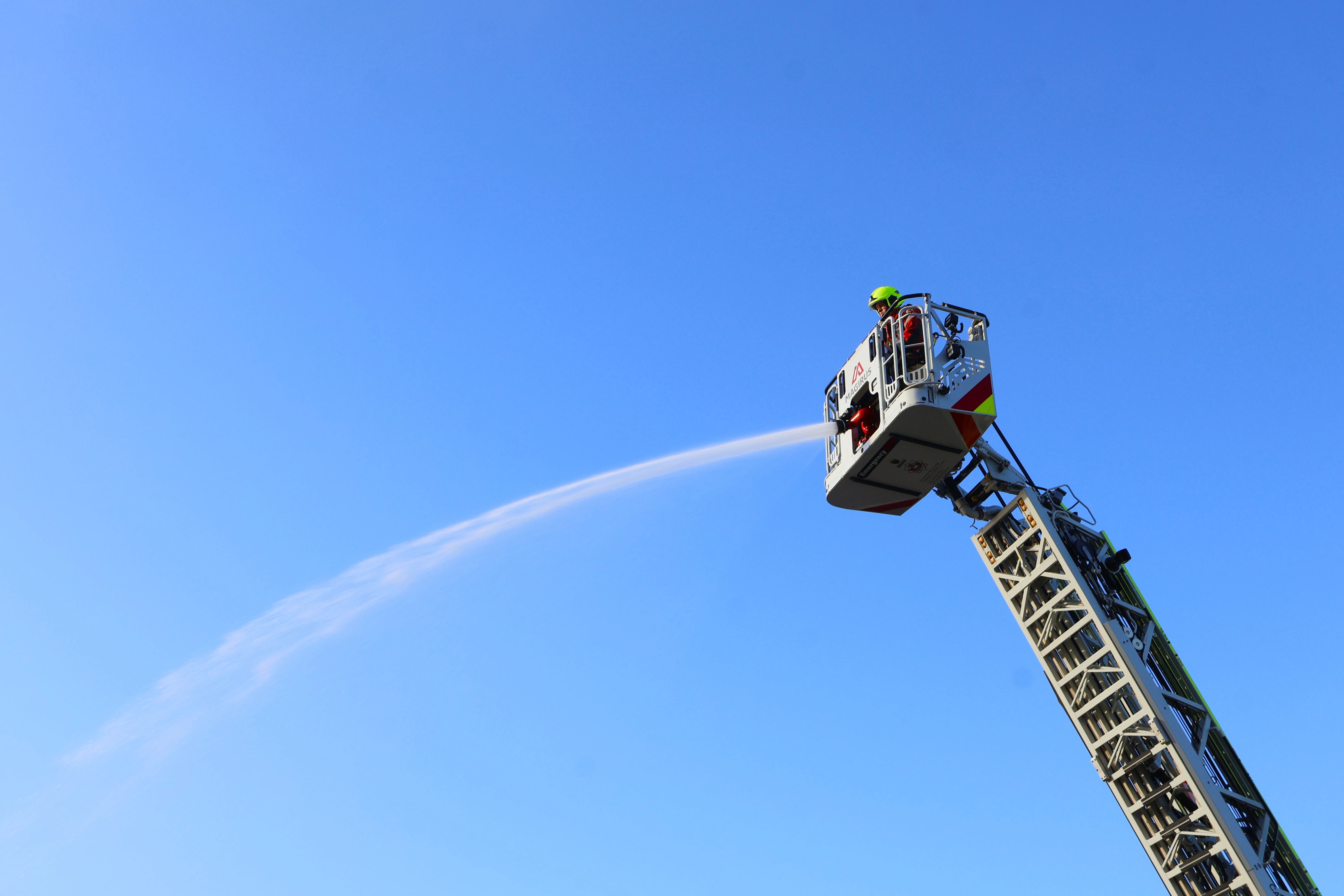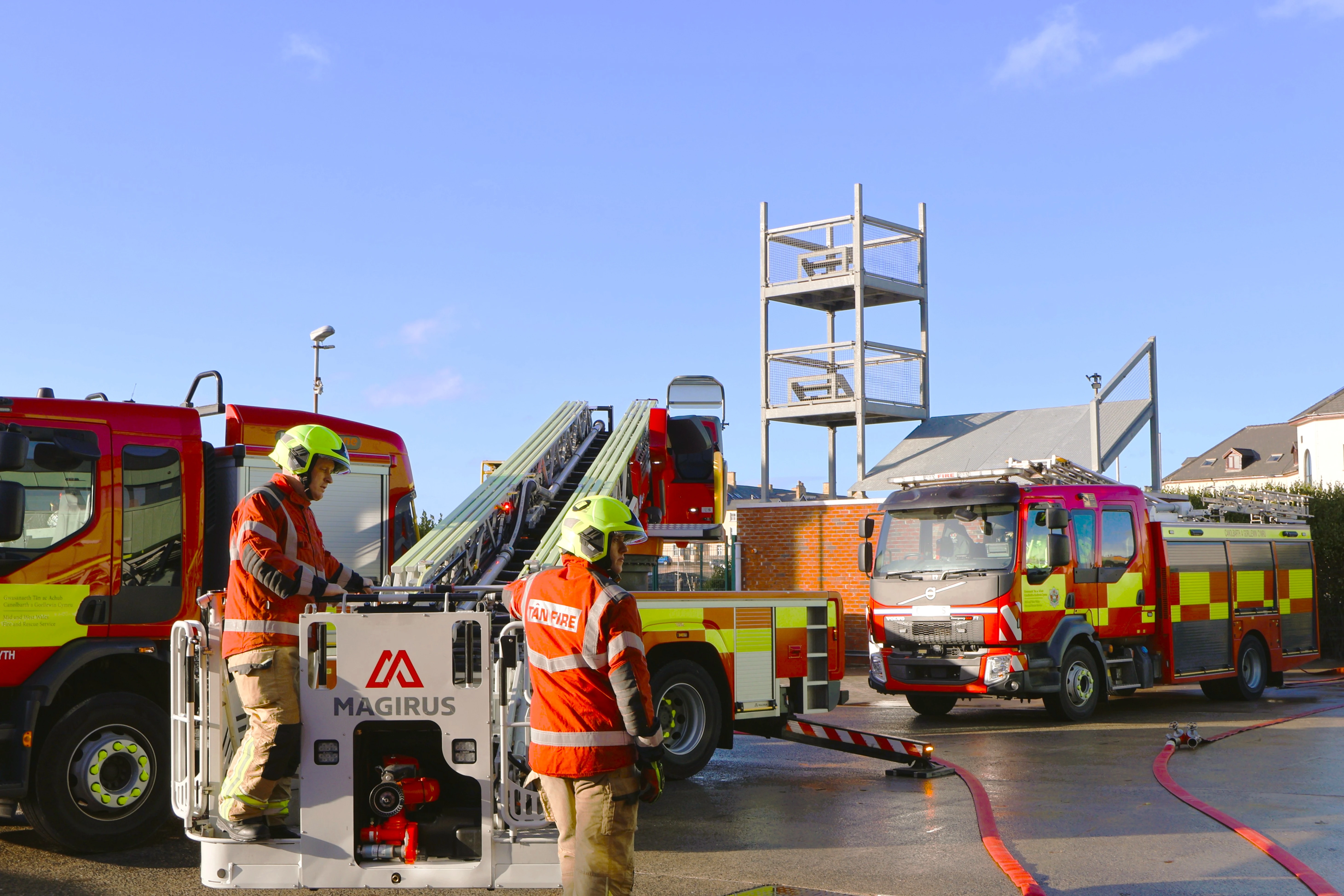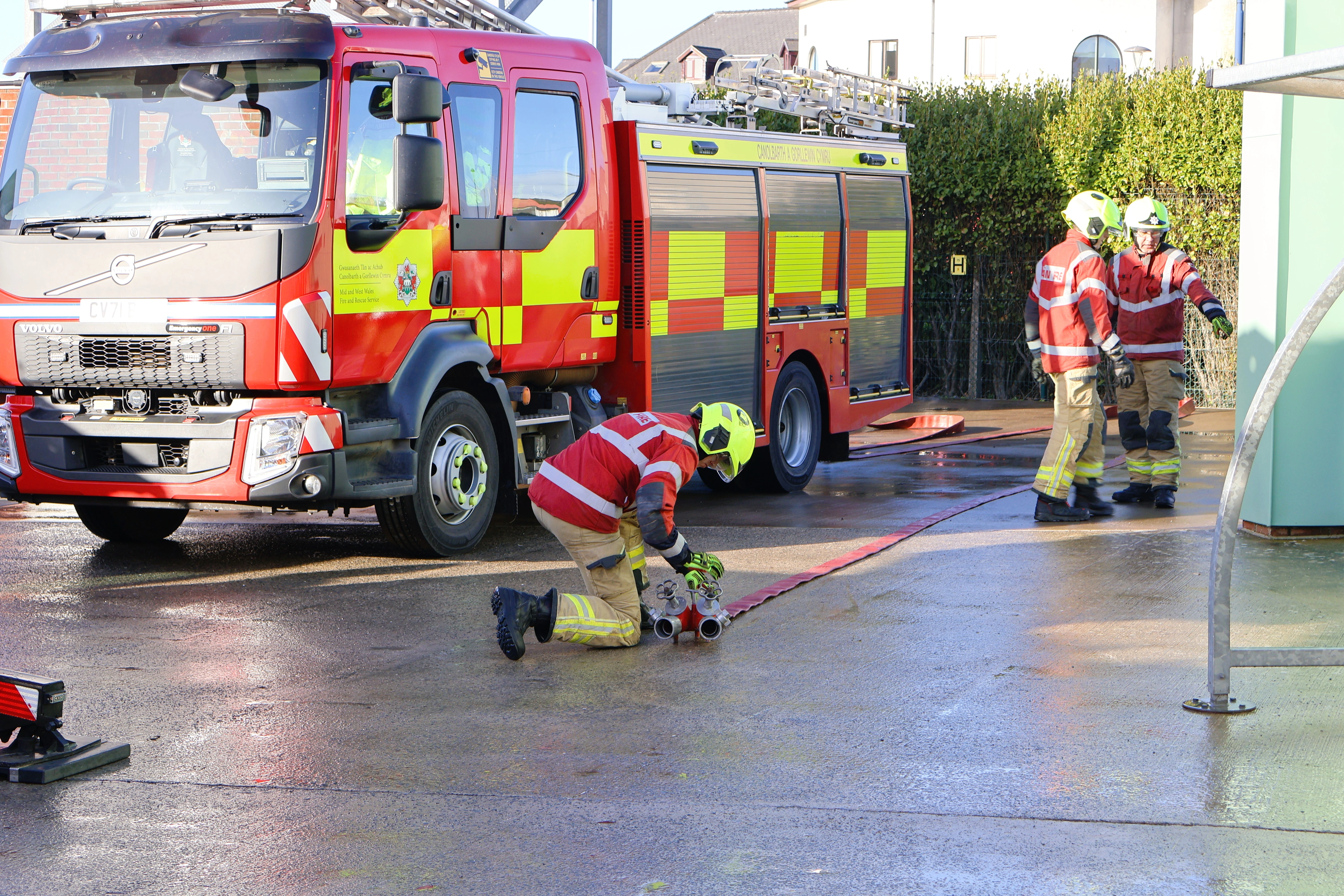The exercise brought together both Wholetime and On‑Call Firefighters, offering an opportunity to strengthen teamwork and ensure consistent operational standards across the station. As part of the training, Firefighters were able to enhance and refine their skills and operational procedures, as well as practicing how to integrate the turntable ladder (TL) appliance with other fire engines. Radio communications between all Firefighters were also tested, including those between the Watch Manager at the TL appliance’s control podium and the Firefighter in the rescue cage.