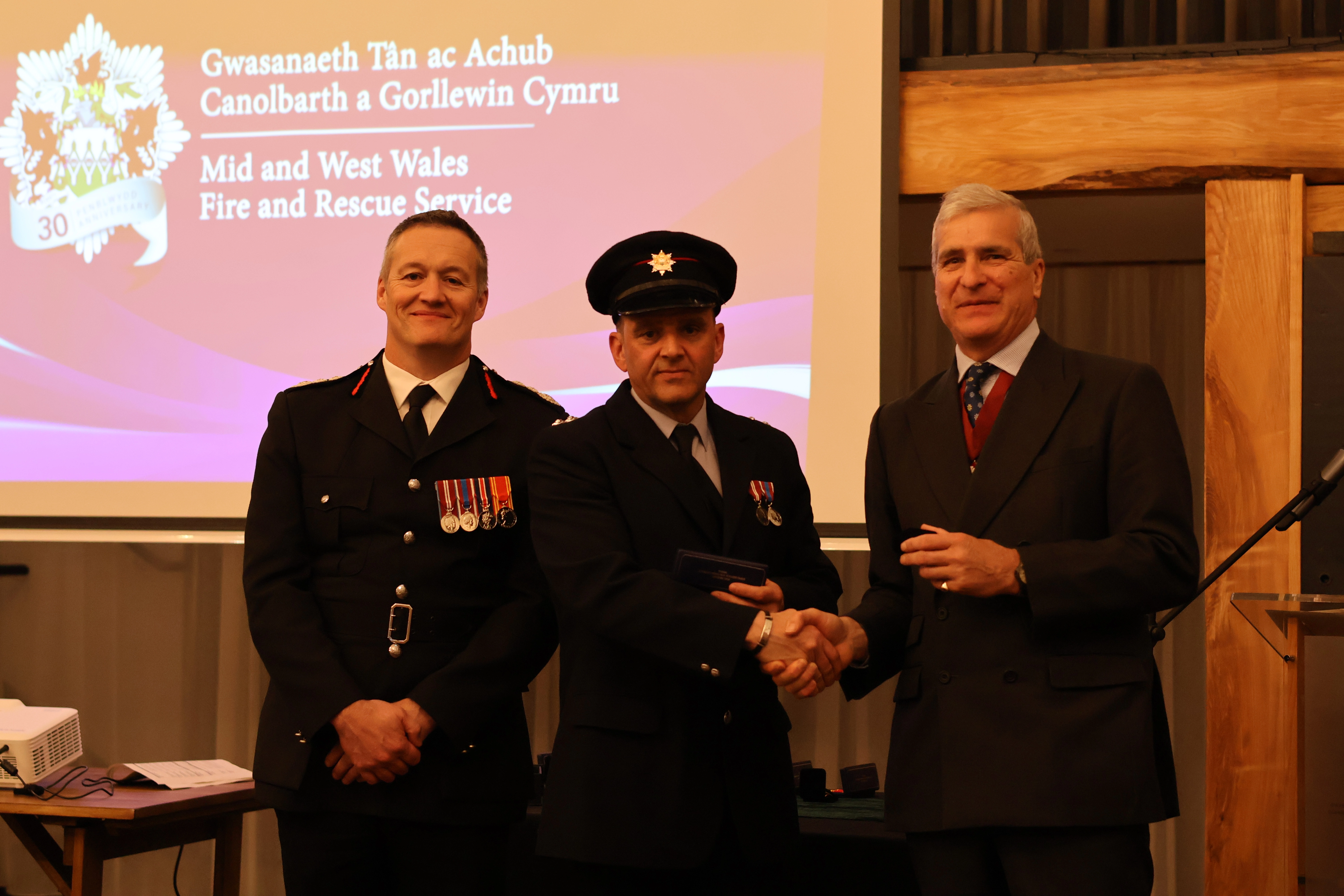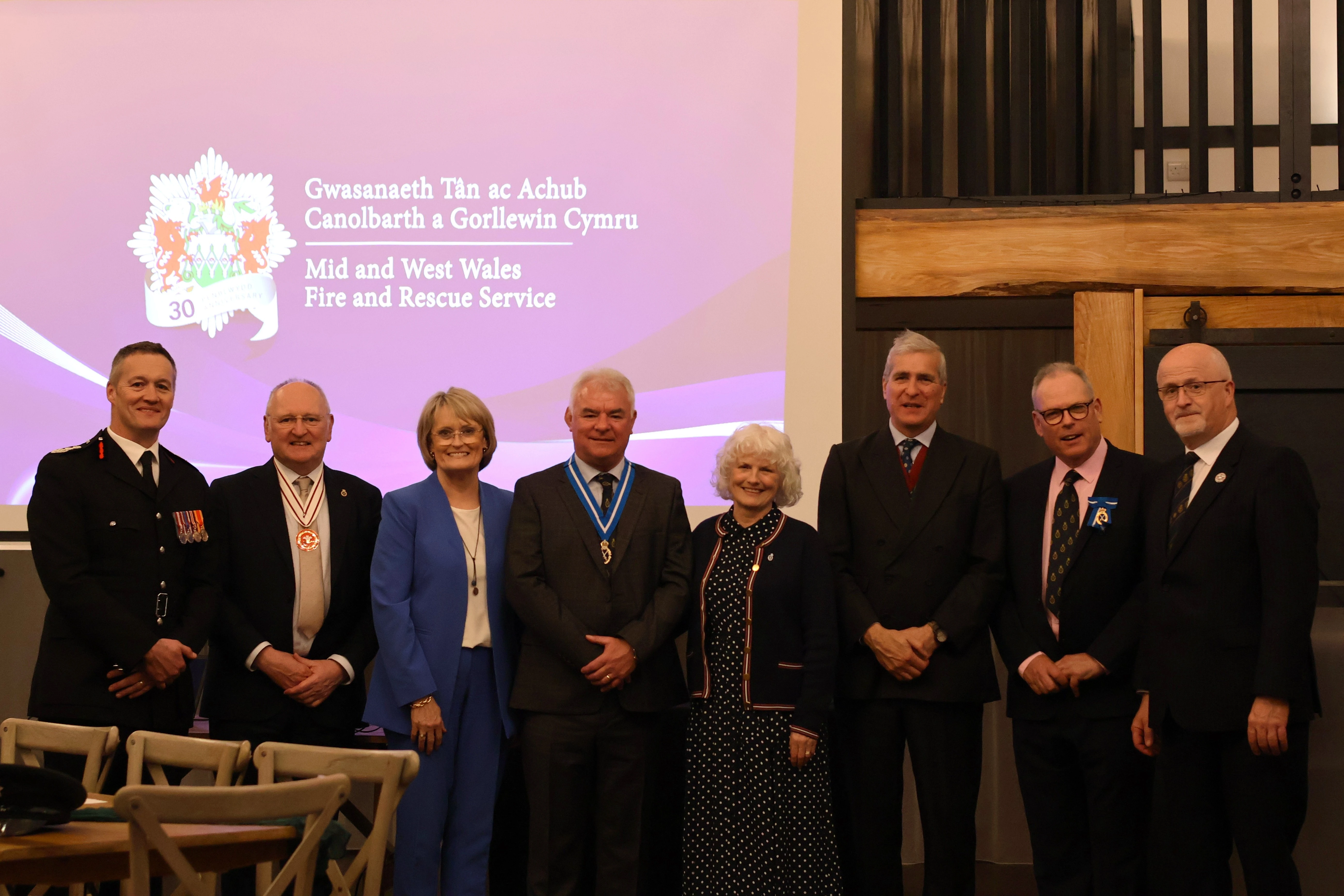Roedd y noson yn gyfle arbennig i ddathlu a chydnabod 30 ac 20 mlynedd o wasanaeth a gwblhawyd gan bersonél gweithredol a chymorth. Wedi'i gyflwyno gan Brif Swyddog Tân GTACGC, Craig Flannery, roedd y seremoni'n cynnwys perfformiad gan Gôr Meibion Aberhonddu, cyflwyno medalau a gwobrau i bersonél GTACGC, a bwffe.