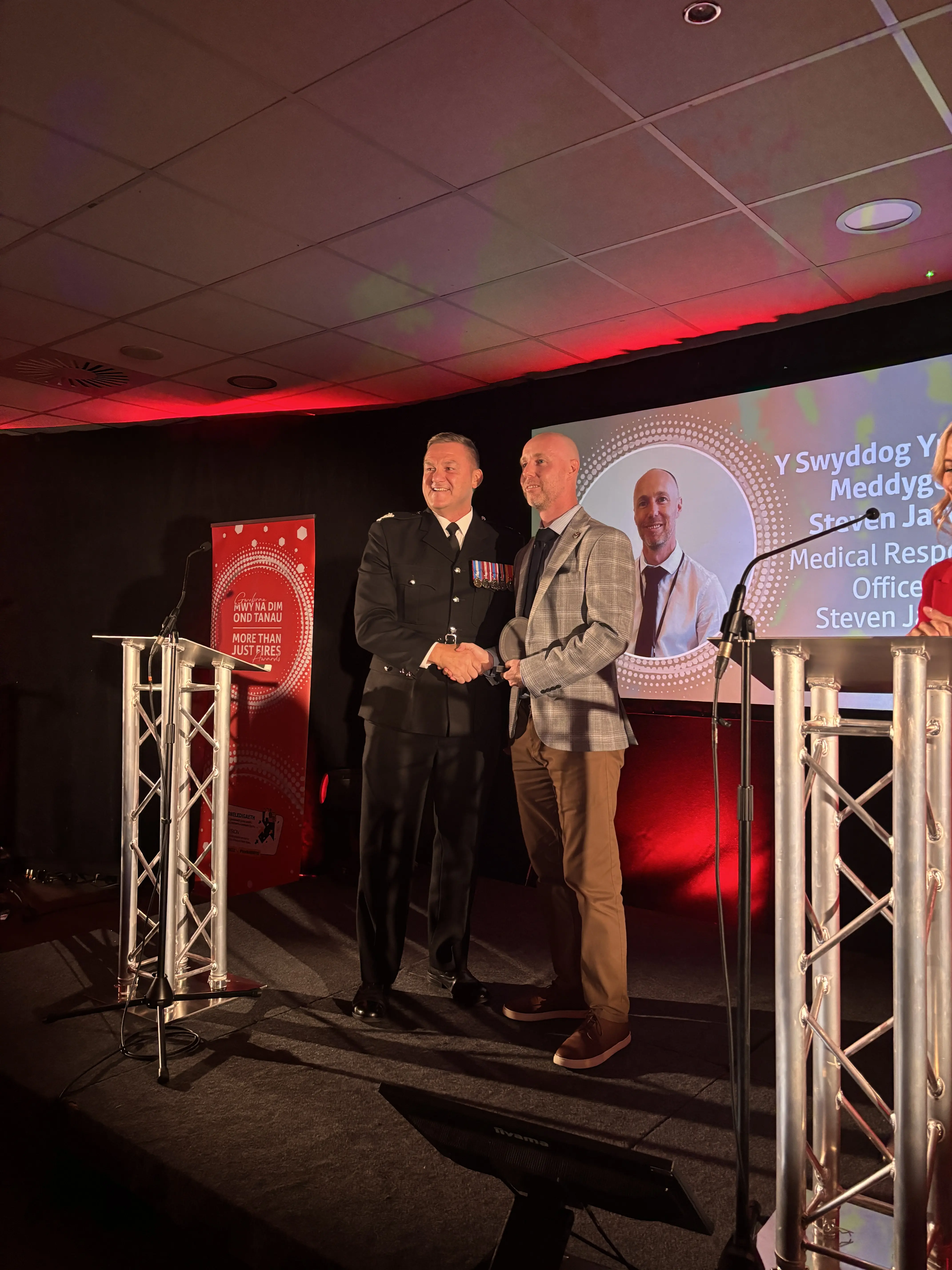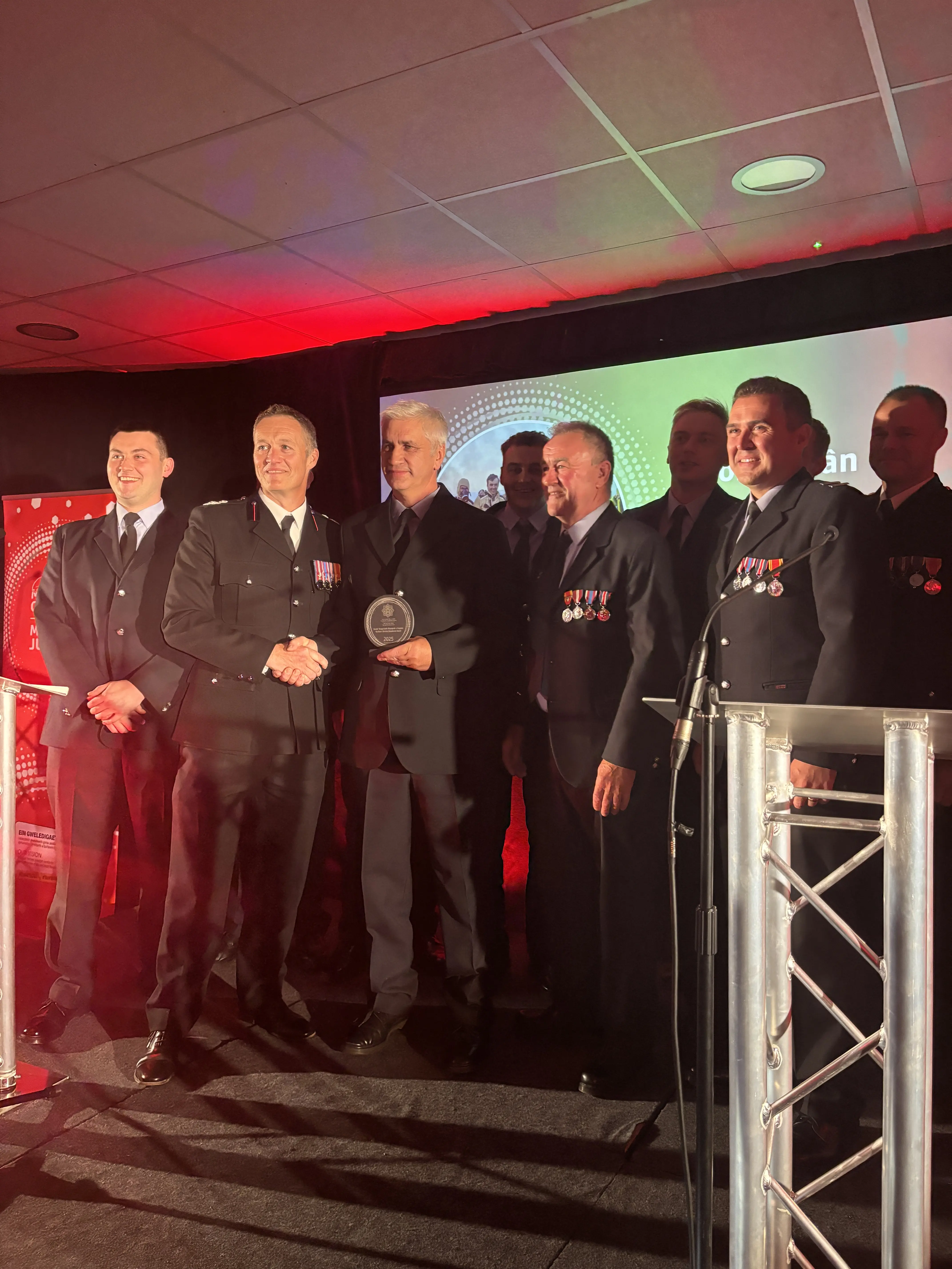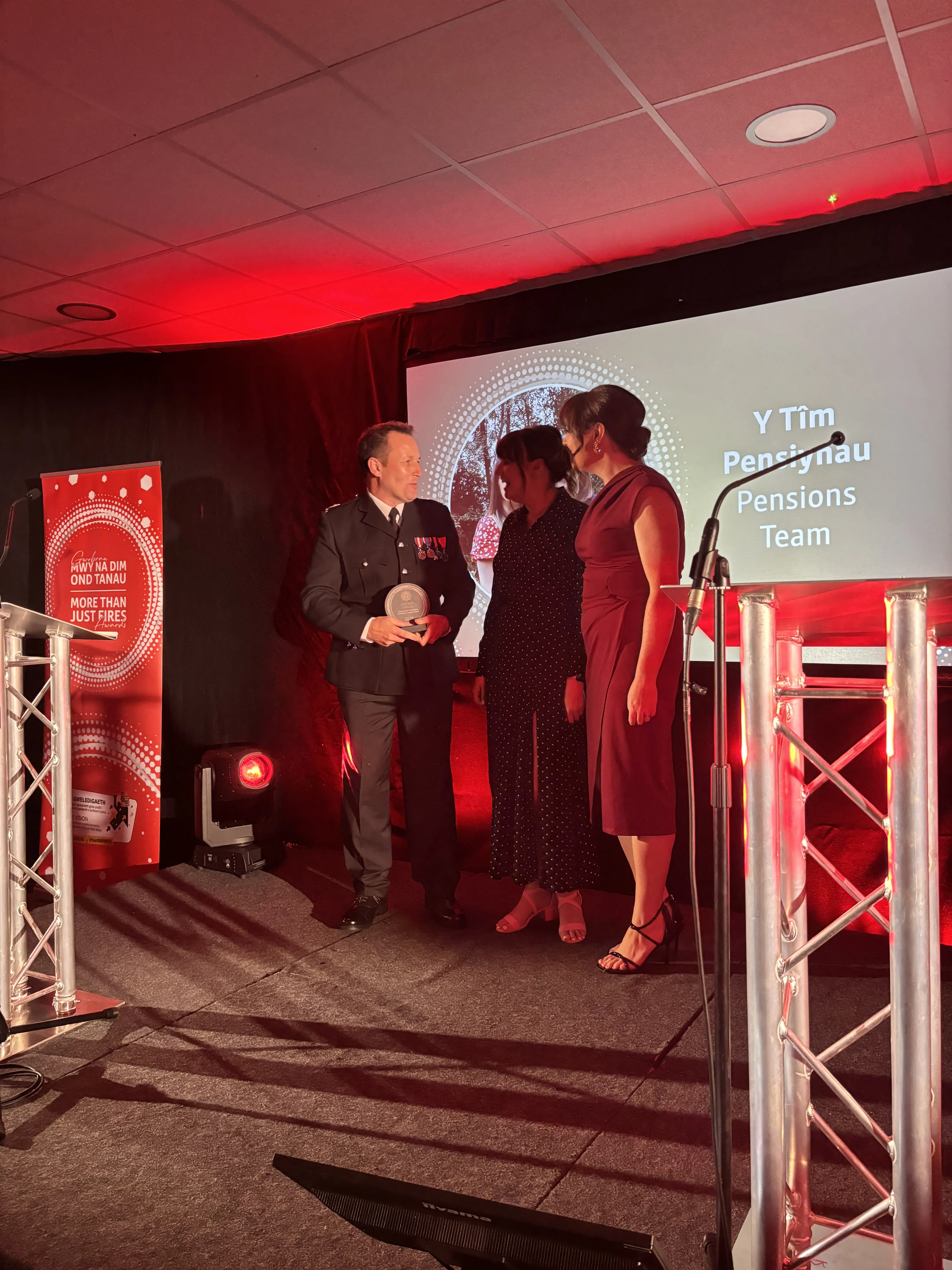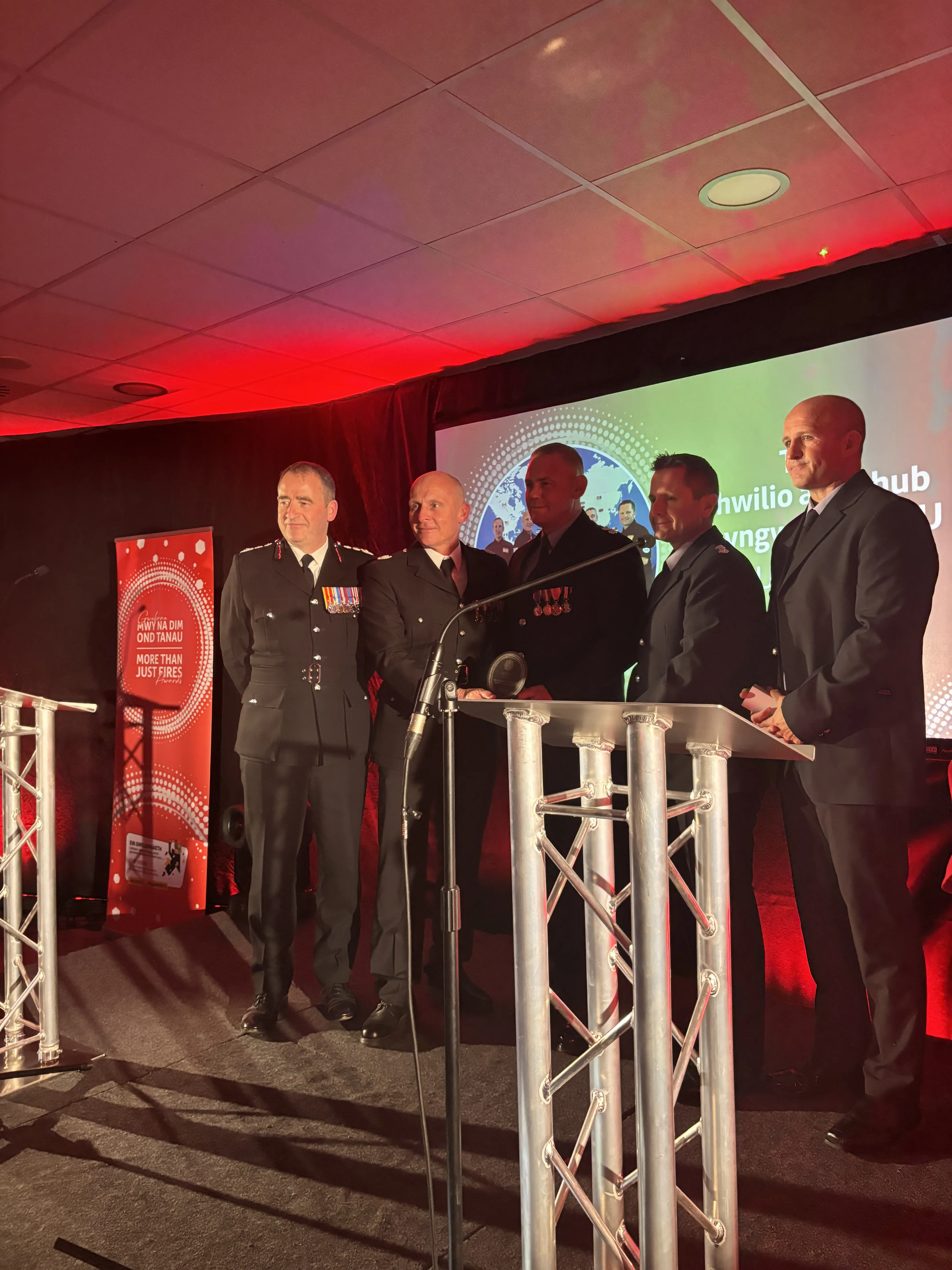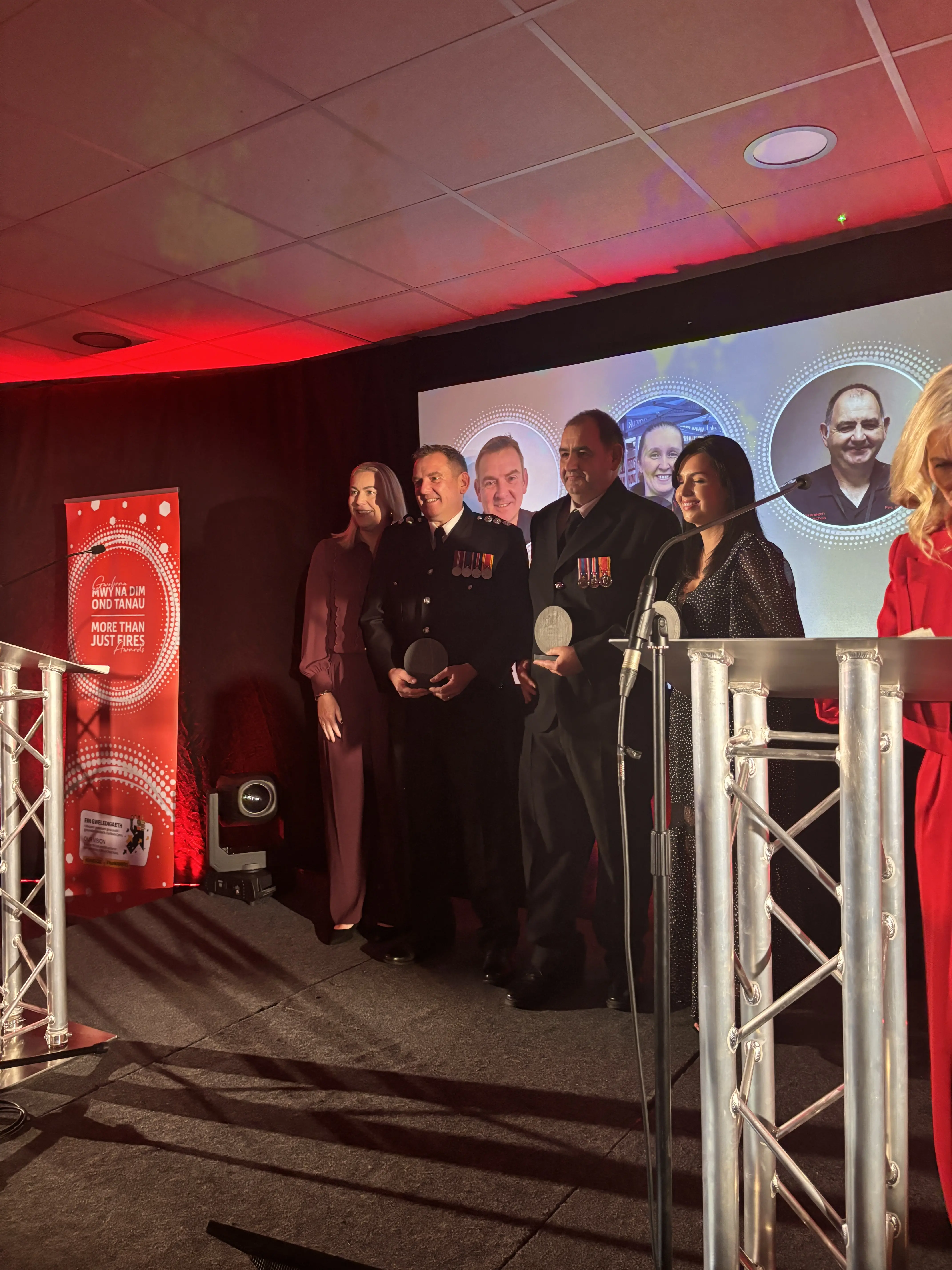 Categori olaf y noson oedd Gwobr Cydnabyddiaeth Arbennig y Prif Swyddog Tân Mae'r wobr hon yn dyst i'r unigolion a'r timau anhygoel sydd, trwy eu dewrder eithriadol, eu hymroddiad diflino, a'u hymrwymiad diwyro, nid yn unig yn gwella ein Gwasanaeth ond hefyd yn ein cynrychioli'n gadarnhaol yn y gymuned.