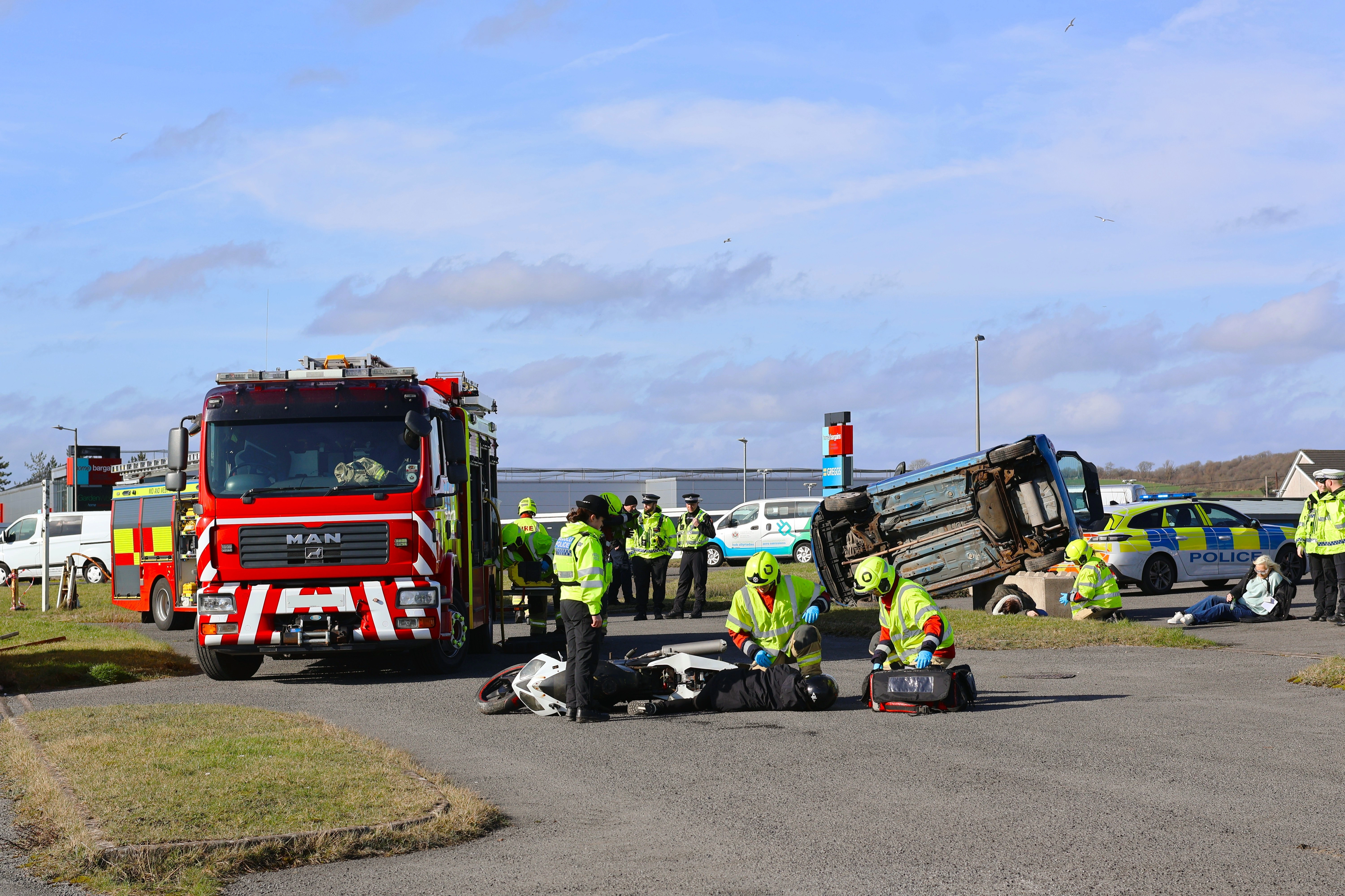 Fel rhan o'r ymarferiad, fe wnaeth y criwiau ymarfer technegau ar gyfer tynnu pobl yn rhydd, gofalu am bobl wedi’u hanafu, a chydlynu rheolaeth y digwyddiad, gan sicrhau eu bod yn parhau i fod yn gwbl barod i ymateb i argyfyngau go iawn ledled canolbarth a gorllewin Cymru.
