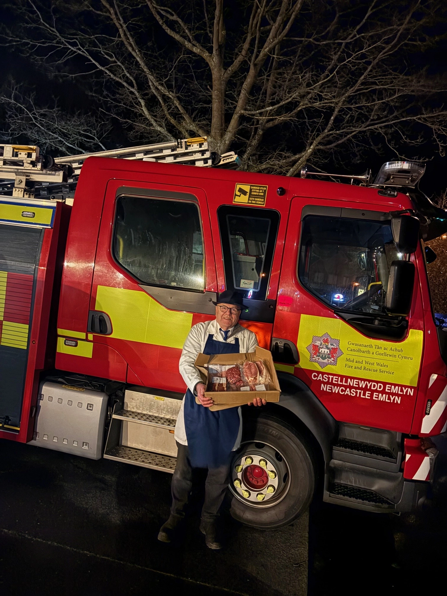As a token of appreciation, each crew member and their family were presented with a meat hamper provided by local butchers, Dewi James a’i Gwmni. The hampers were presented by Watch Manager Gethin Davies.