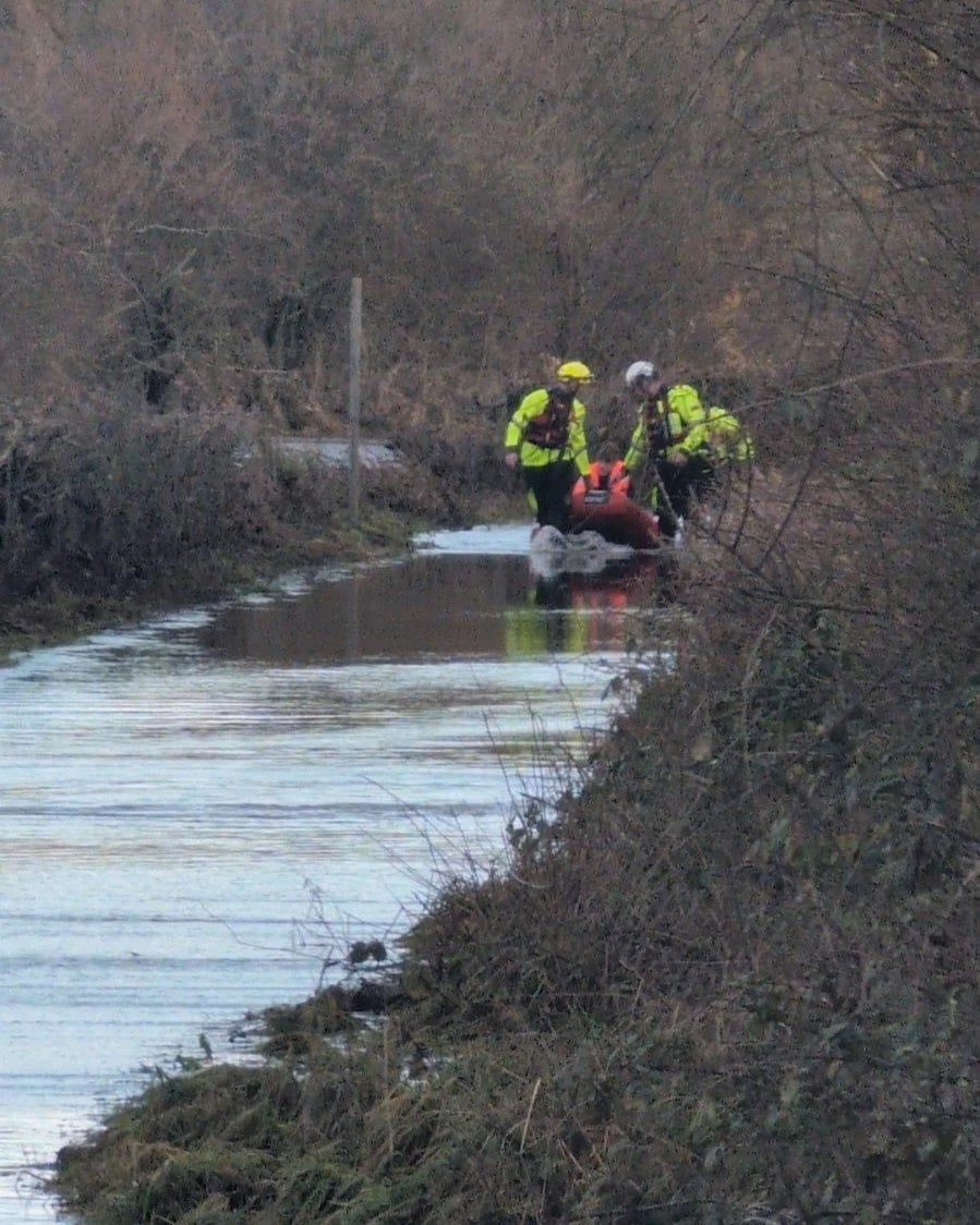 Crews responded to one van that was stuck in floodwater.  A full wading team with a rescue sled was deployed to reach and rescue the van’s driver.