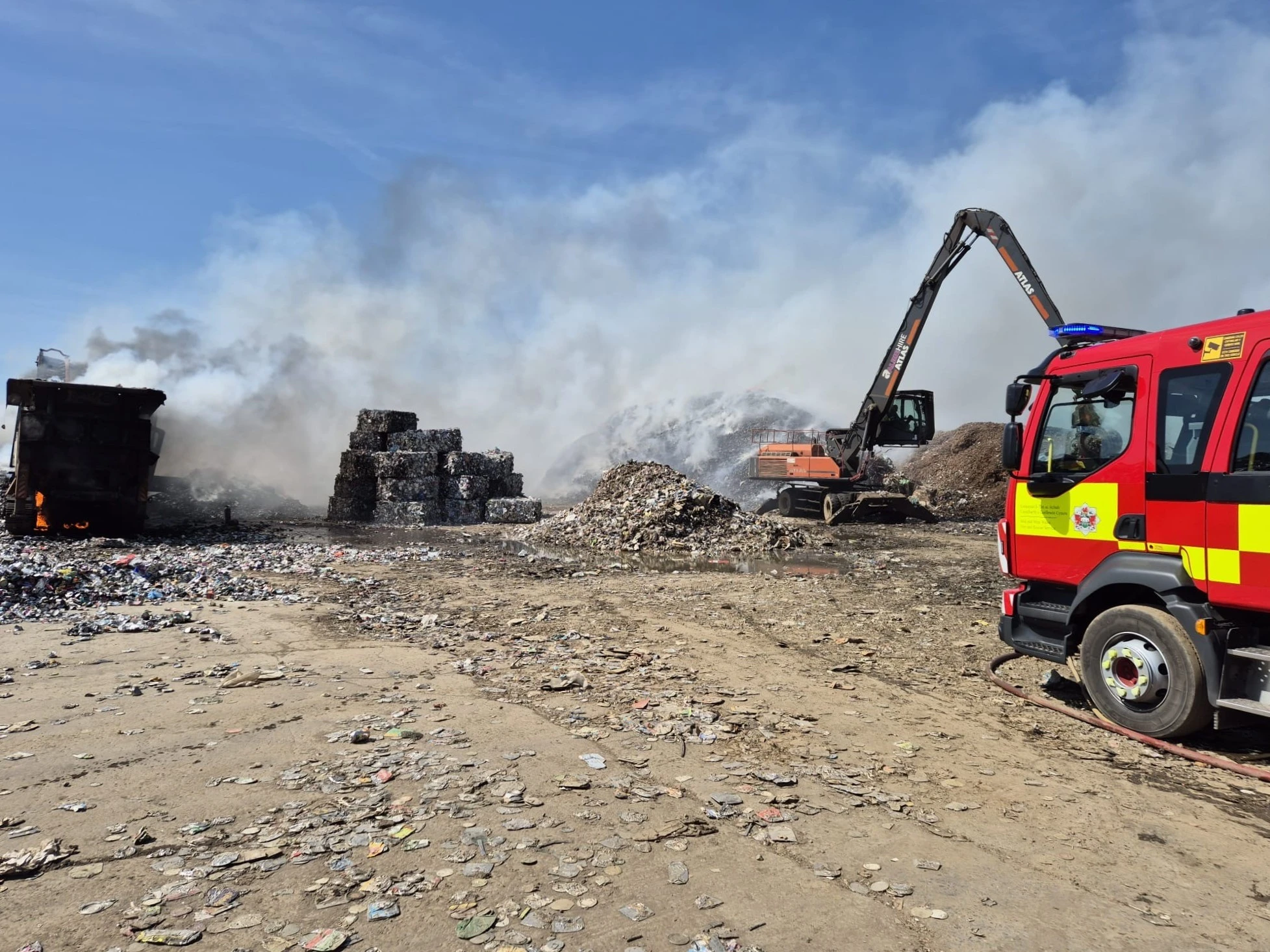 The incident was sectorised and crews utilised two ground monitors, two main jets, two hose reel jets and on-site excavators to extinguish the fire. After extinguishing the fire, crews continued to dampen down. Crews were supported by the attendance of water bowser appliances from Tumble and Port Talbot Fire Stations.